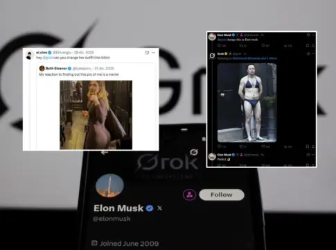 El caso que disparó la polémica se produjo a finales de diciembre. La escritora e influencer británica Beth Eleanor publicó una foto suya en una biblioteca, de espaldas, haciendo el gesto de "ok" con la mano. Un consultor de IA con 100.000 seguidores en X citó su mensaje y pidió a Grok que cambiara su ropa por un bikini. La IA obedeció a rajatabla y generó la nueva imagen, públicamente visible como respuesta en la propia red.