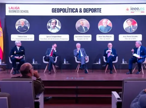 La primera mesa redonda, 'Deporte y geopolítica', reunió a perfiles de alto nivel como Juan Antonio Samaranch (vicepresidente primero del COI), Ignacio Cartagena (Casa del Rey), Federico Aznar (capitán de fragata de la Armada y Analista Principal del IEEE) y Javier Tebas, presidente de LaLiga, que analizaron el papel del deporte como instrumento de 'soft power', su influencia en las relaciones internacionales y su papel en la construcción de narrativas globales.
