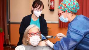 Personas mayores de la residencia de Vallecas, perteneciente a la Agencia Madrileña de Atención Social (AMAS), Las Azaleas y Parque Almansa ya están recibiendo las primeras vacunas contra el Covid-19 de la Comunidad de Madrid en esta primera jornada.