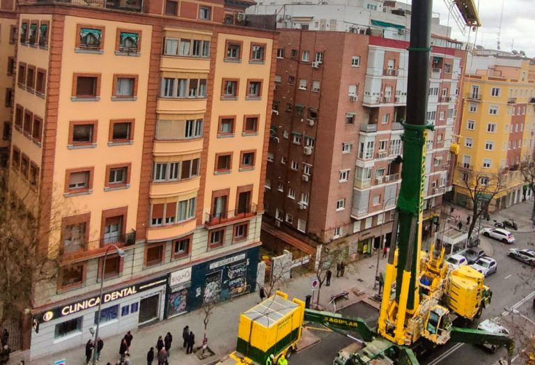 El temor de los vecinos del 25 y 27 de Cavanilles mostraron su contrariedad para evitar que la enorme grúa sobrevolase sus techos. El motivo de la gigantesca grúa es la construcción de un aparcamiento en el patio de la manzana, un proyecto paralizado por el anterior gobierno municipal de Manuela Carmena en 2018, un año antes de agotar su mandato. De hecho, se aseguró que solo existía vegetación en el interior.