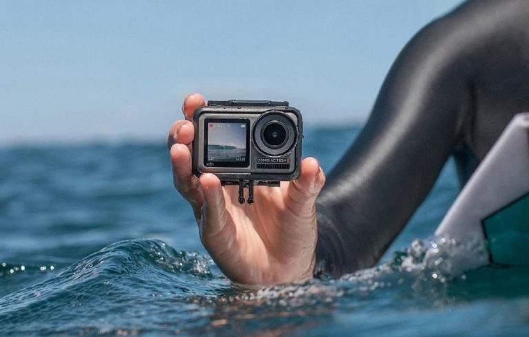 La siguiente propuesta de cámara deportiva es la DJI Osmo Action. Está marca está especializada en drones, pero también fabrica este tipo de aparatos. Sin embargo, no ha apostado por la duración de su batería, ya que tiene una autonomía que no alcanza las dos horas. Es capaz de grabar a 4K a 30 fotogramas por segundo, pero si quieres realizar un vídeo cámara lenta puedes bajar su calidad para que llega a los 120 fps.