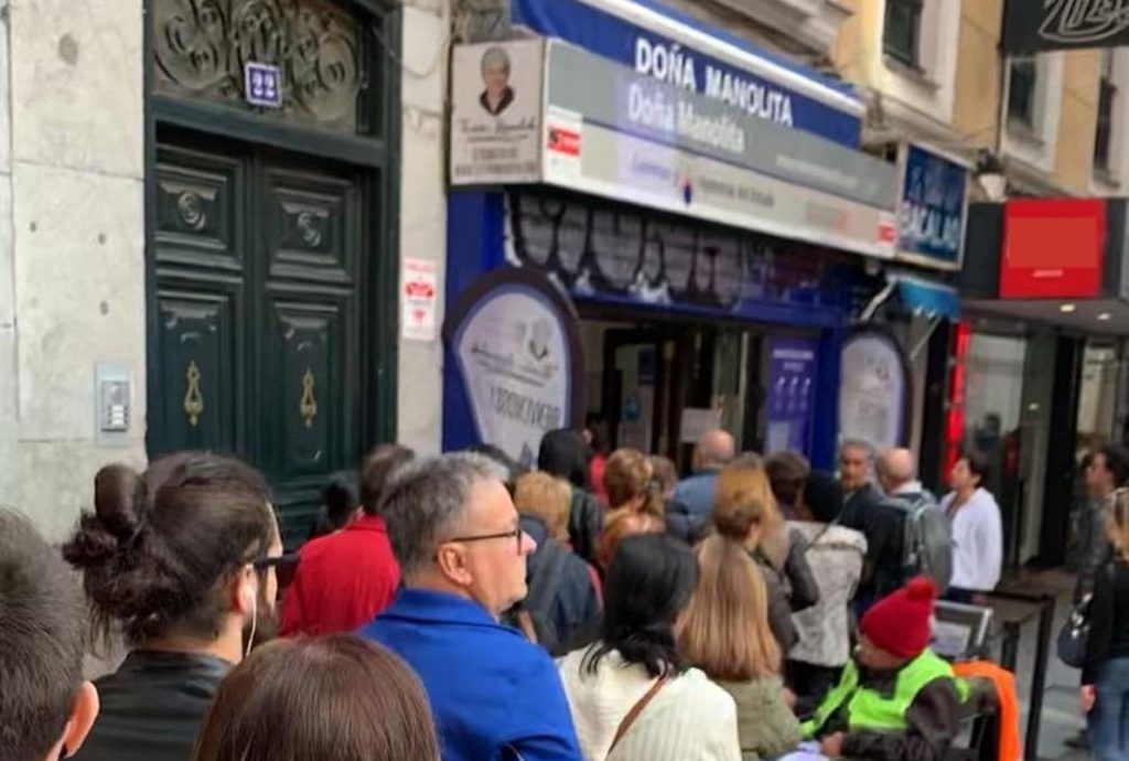 Doña Manolita es una administración clásica en Madrid. Desde mediados de noviembre, las colas a su puerta comienzan a hacerse habituales. Y es que no hay visita a Madrid que no acabe con un cupón comprado en esta administración.
