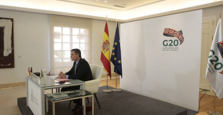 Sánchez considera que el G20 debe seguir desempeñando un "papel clave" para abordar las consecuencias económicas provocadas por la pandemia con especial atención a los más vulnerables.
