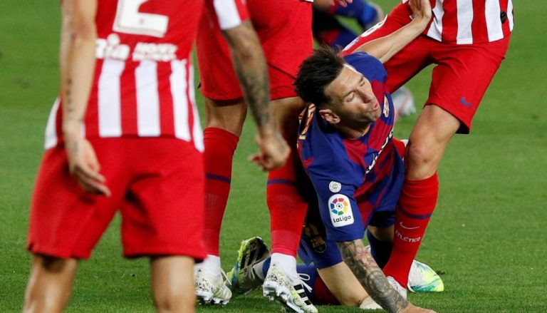 Min 60 | Juego detenido y Piqué en el césped. Se le dobla la rodilla tras caerle encima Correa. Mala pinta pero esperemos que no sea grave.