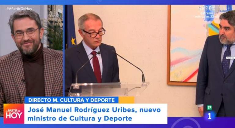 De hecho, durante unos segundos, Huerta compartió plano con José Guirao (quien le sustituyó a él), y también con José Manuel Rodríguez Uribes, nuevo ministro.