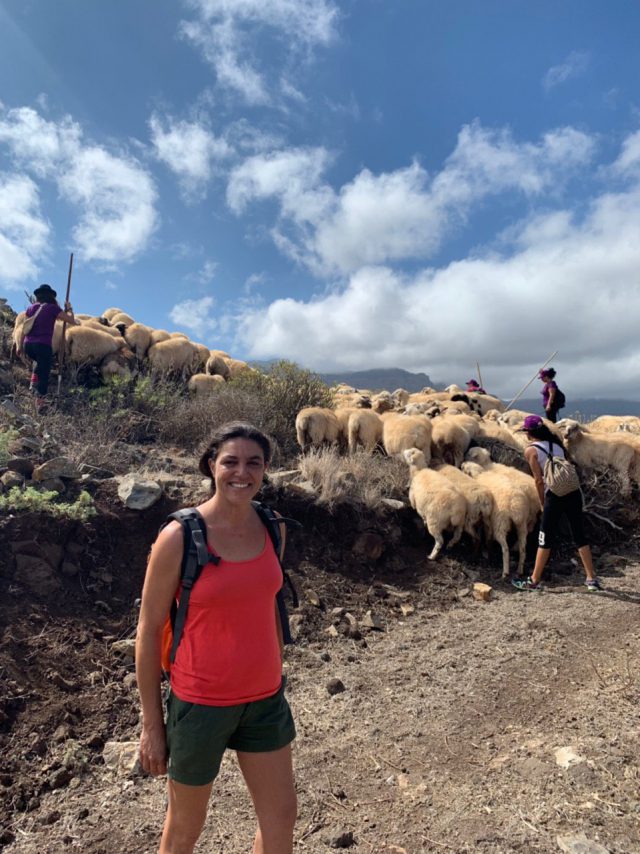 La concejala ya acompañó el pasado mes de julio al único pastor trashumante del municipio capitalino, Airám Rivero, que junto a otros pastores y sus perros, emprendió desde San Lorenzo el camino para conducir a más de 500 ovejas desde la capital grancanaria a Fontanales, donde pasarán los próximos meses antes de seguir hasta Tejeda, ya que en esta zona se encuentran mejores pastos para los animales.