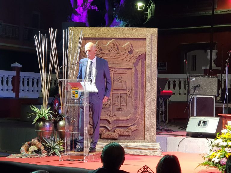 La Fiesta del Pino 2019 ha quedado inaugurada este viernes 30 de agosto con un unánime aplauso del público que disfrutó durante casi 70 minutos del pregón de Yeray Rodríguez, sorprendiendo con sus versos y el acompañamiento de Beatriz Alonso, Pedro Manuel Afonso, Javier Cerpa, Fernando García, Ner Suárez y Silvestre Ramírez, que pusieron música a sus palabras. Un pregón cargado de referencias “Para una isla que se quiera”, como había anunciado. “Voy a referirme en mi pregón – dijo Yeray al inicio- a este pueblo, esta isla y esta fiesta desde consideraciones que me ayuden a compartir con todos ustedes esa mirada sobre una isla necesitada de afianzar cada vez más ese sentido de pertenencia, ese orgullo sano y necesario que será lo único que nos salve del silencio y la desolación”, y así lo hizo.