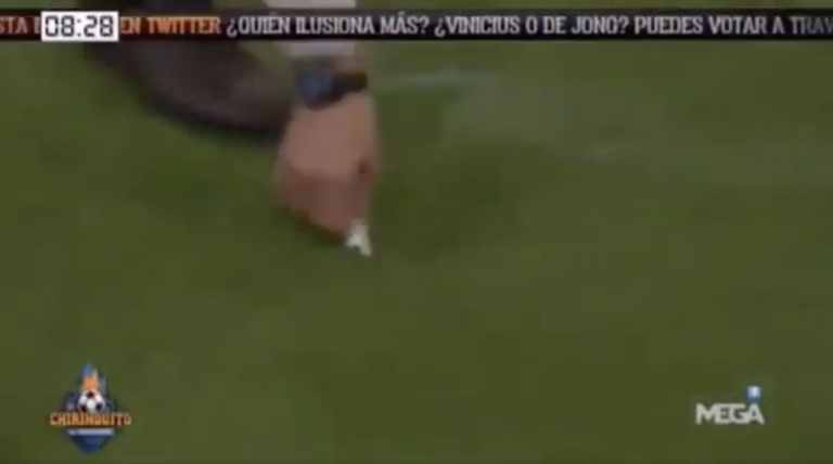 La polémica se remonta a la emisión del pasado jueves. Aguirre esperaba su intervención y cuando llego su turno, se acercó corriendo hasta su puesto. Durante la carrera, algo de color blanco se cayó de su bolsillo. "