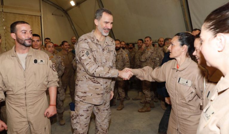 En la base 'Gran Capitán' de Besmayah hay cerca de 500 militares españoles que adiestran y preparan a los cuerpos y fuerzas de seguridad iraquíes en su lucha contra el Daesh. Durante su visita, las tropas le cantaron el "cumpleaños feliz" al monarca